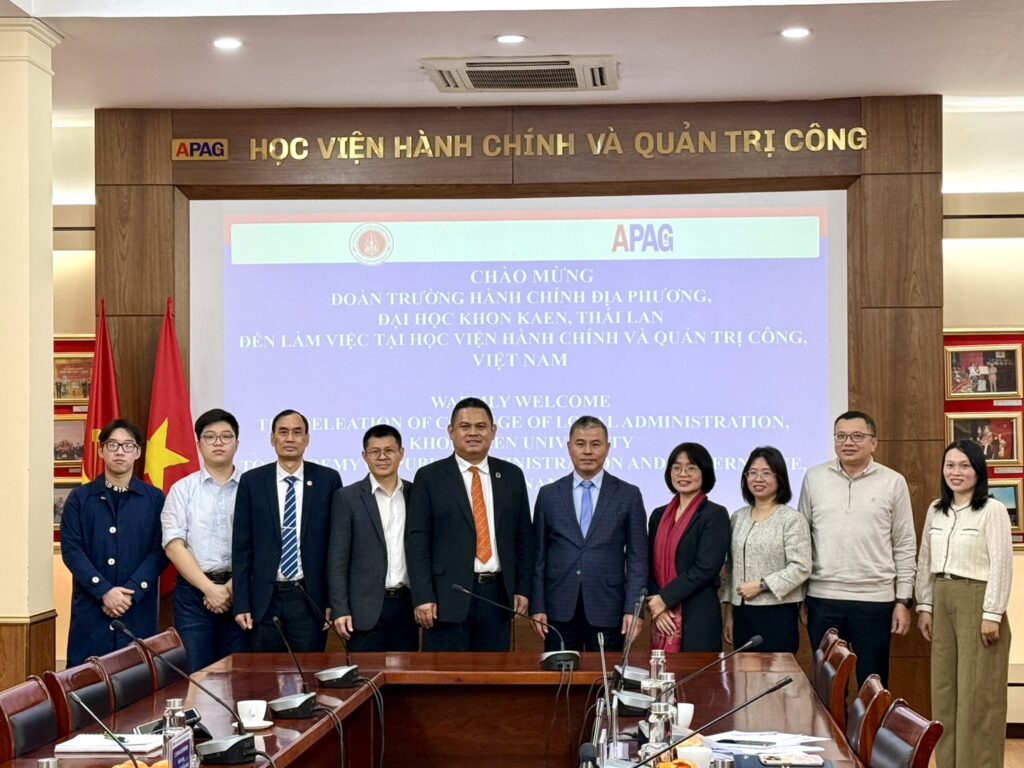 ต่อมาในวันที่ 5 กุมภาพันธ์ 2569 ผู้บริหารของวิทยาลัยฯ ได้เข้าเจราความร่วมมือทางวิชาการระหว่าง COLA KKU กับ สถาบันรัฐประศาสนศาสตร์แห่งชาติเวียดนาม (National Academy of Public Administration and Governance of Viet Nam: APAG) สถาบันการศึกษาอันดับหนึ่งด้านการบริหารกิจการสาธารณะของเวียดนาม ซึ่งทั้ง COLA และ APAG ได้ร่วมเป็นภาคีสมาชิกของ EROPA ด้วย การสถาปนาความสัมพันธ์ในครั้งนี้เป็นไปตามวิสัยทัศน์ของ COLA ที่มุ่งเป็นสถาบันชั้นนำด้านกิจการสาธารณะแห่งอาเซียนที่สร้างสรรค์คุณค่าแก่สังคมโดยได้รับเกียรติจากรองอธิการบดีของ APAG และคณะให้การต้อนรับ