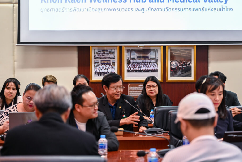 ในการนี้ รศ.นพ.ชลธิป พงศ์สกุล ผู้ช่วยอธิการบดีฝ่ายติดตามยุทธศาสตร์และโครงการสำคัญ และรักษาการแทนผู้อำนวยการศูนย์บริหารเวลเนสและเขตนวัตกรรมทางการแพทย์ มหาวิทยาลัยขอนแก่น ได้เข้าร่วมวงเสวนาเพื่อฉายภาพความก้าวหน้าและร่วมวางโครงสร้างการทำงานระหว่างหน่วยงานทุกภาคส่วน โดยกิจกรรมครั้งนี้มุ่งเน้นการออกแบบความร่วมมือเชิงระบบที่เชื่อมโยงภาครัฐ ภาคเอกชน ภาคประชาชน ภาคประชาสังคม และภาคการศึกษา ให้ทำงานร่วมกันอย่างเป็นรูปธรรมเพื่อยกระดับการพัฒนาพื้นที่อย่างยั่งยืน
